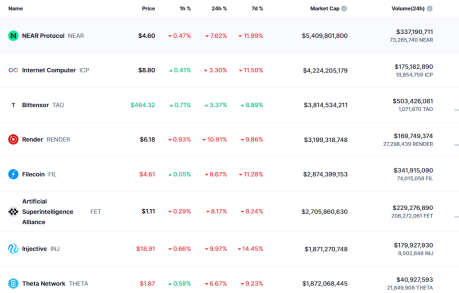 Pérdidas notables en criptomonedas de IA, fuente: cCoinmarketcap