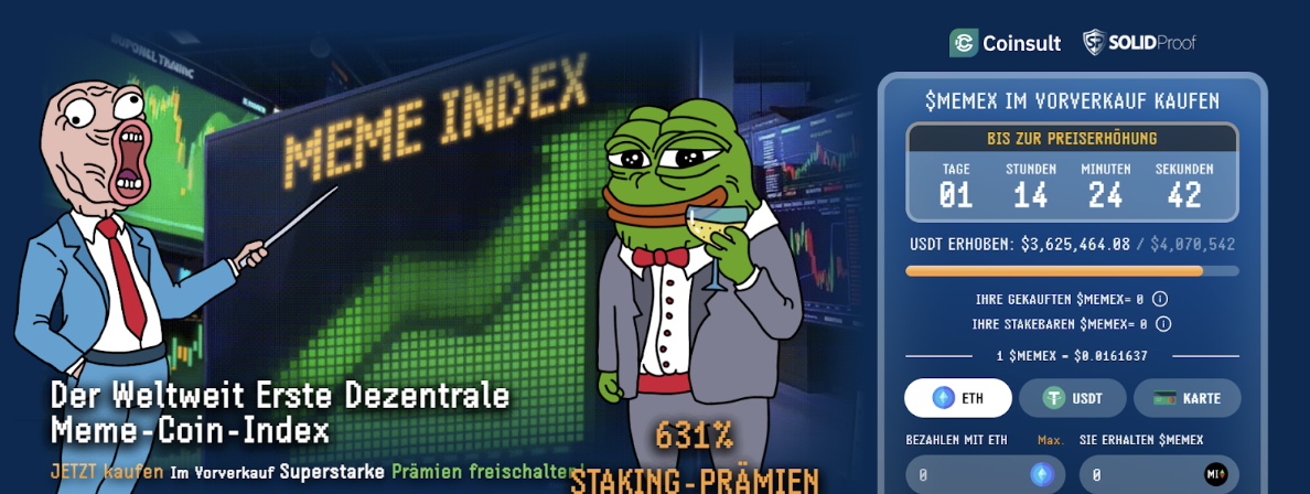 Debido a que cada inversionista necesita tokens $MEMEX si quiere aprovechar el índice meme, la demanda de la moneda se está disparando actualmente. $MEMEX todavía está disponible en preventa y ya ha aumentado a más de $3,6 millones. Varios aumentos de precios en la preventa aseguran que los primeros compradores ya puedan obtener una primera ganancia contable hasta el lanzamiento. La función de participación integrada también recompensa especialmente a los primeros inversores, ya que el rendimiento de la participación es particularmente alto al principio. Debido a la alta demanda, los analistas esperan que el precio de $MEMEX aumente más de 10 veces después del lanzamiento.