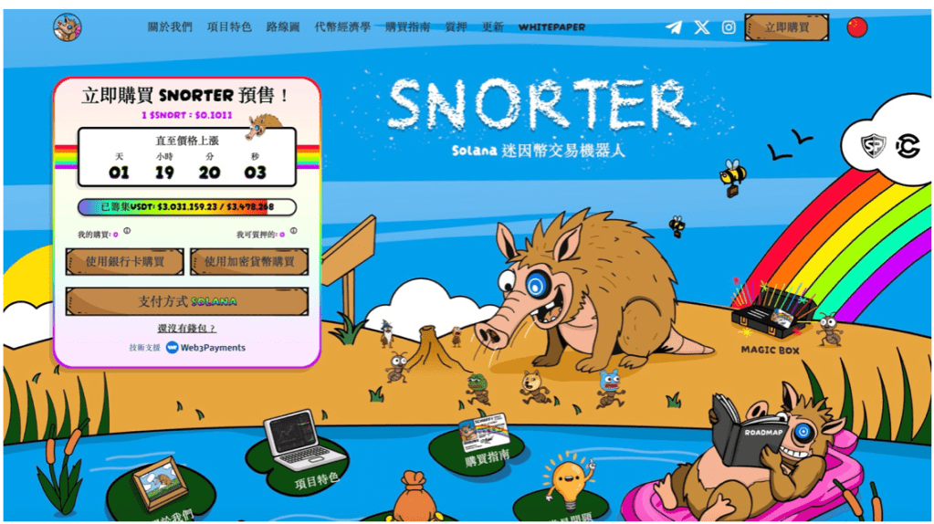 Snorter的品牌建立在幽默與文化共鳴之上,與投機資金的特性天然契合。對於習慣在市場中追逐短期波動的玩家而言,這種項目往往在行情初起階段具備更快的反應速度。一旦市場確認進入山寨幣季,Snorter有機會憑借社區的緊密互動與輕量化的應用場景,迅速進入上漲軌道。