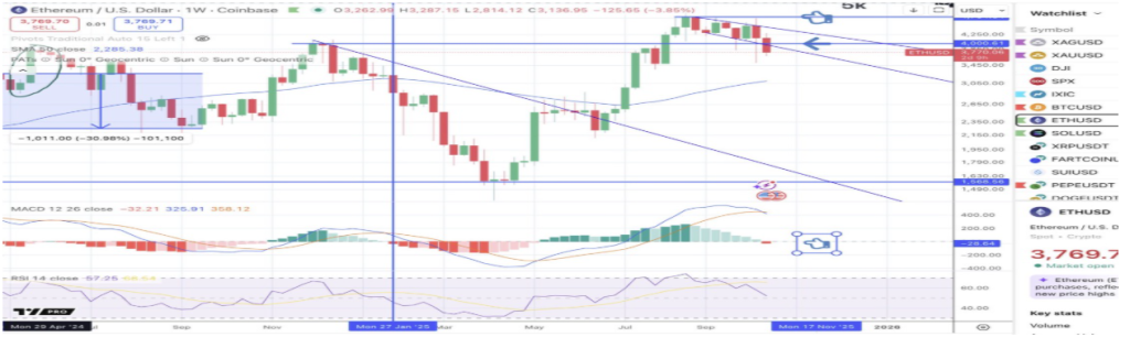 Other analysts like Marzell have echoed similar concerns, stating that Ethereum is now nearing a “crash zone.” However, he also highlighted the $3,690 – $3,750 range as a possible short-term demand area where buyers could step in again and trigger the next leg up.