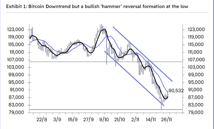 Un patrón de inversión de martillo alcista surgió cuando Bitcoin tocó brevemente el área de $80K, dando a algunos operadores la esperanza de un repunte en la temporada navideña.