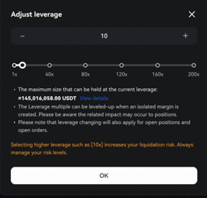 El apalancamiento permite a los traders abrir posiciones más grandes que su saldo de cuenta real. Para aquellos que entienden y aceptan los riesgos asociados con el apalancamiento, Toobit ofrece un límite superior.