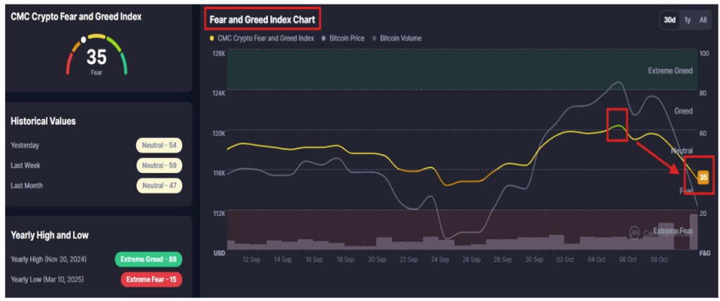 This quick downturn is quite notable, considering the crypto market’s greed index had climbed above 60 when Bitcoin’s price action broke above $126,000 for the first time.