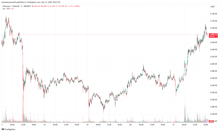 En las últimas horas, Ethereum cayó por debajo del umbral de los 2.500 dólares, pero parece haber encontrado un rebote volviendo alrededor de los 2.700 dólares.