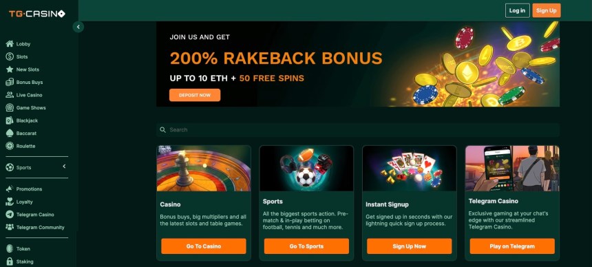 2. TG.Casino: innovadora combinación de redes sociales y blockchain