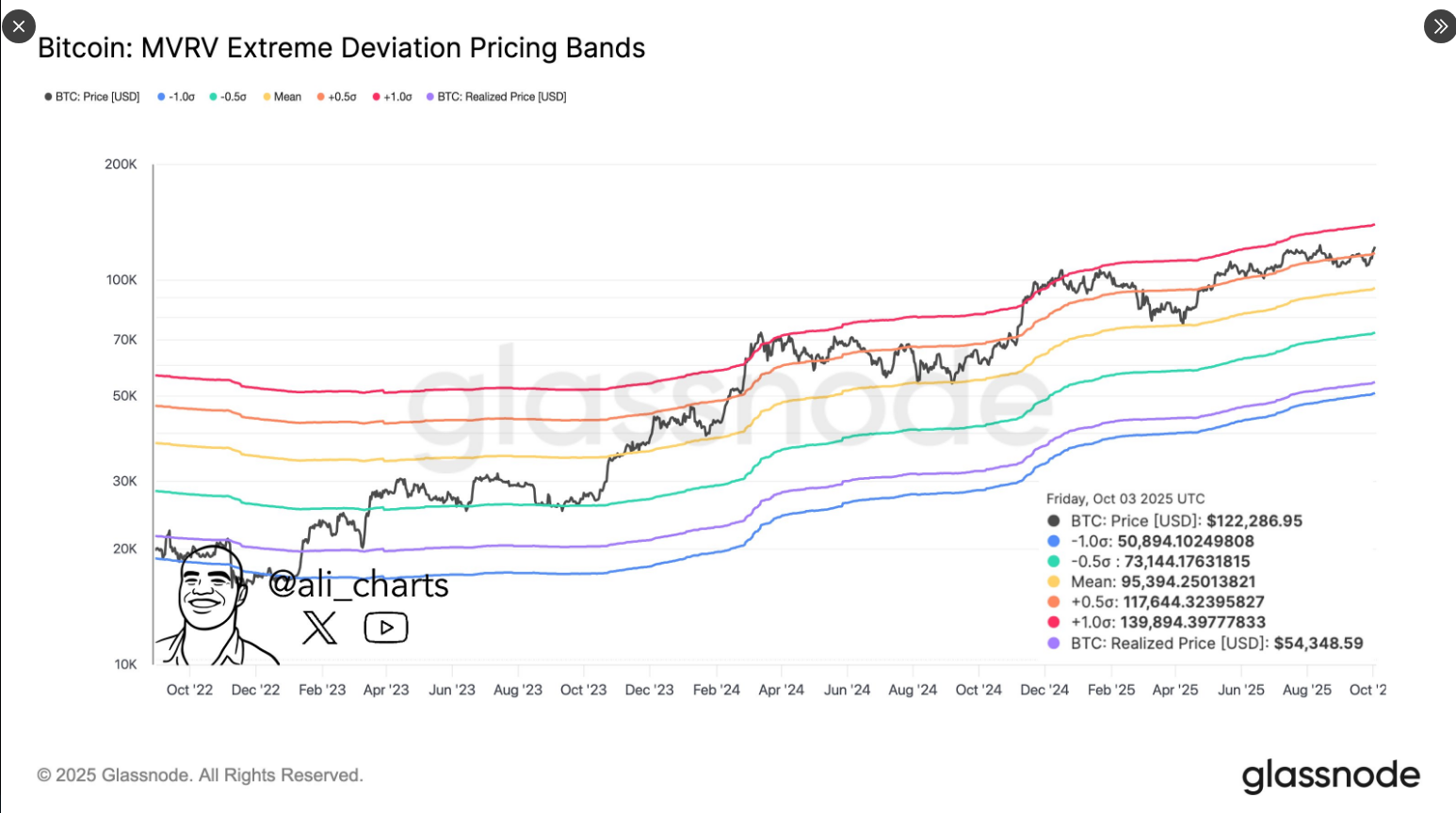 Siempre que Bitcoin $BTC se mantenga por encima de $117,650, las Bandas de Precios apuntan a $139,800 a continuación. pic.twitter.com/DTPtz3Wj52