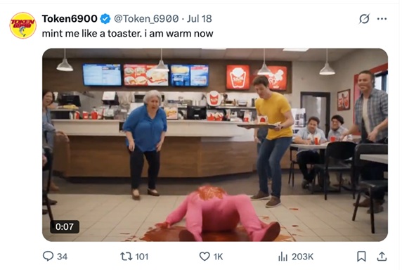 如下面 TOKEN6900 在 X 上的帖子所示,已有 203,000 次流覽,T6900 代幣正在迅速獲得關注。