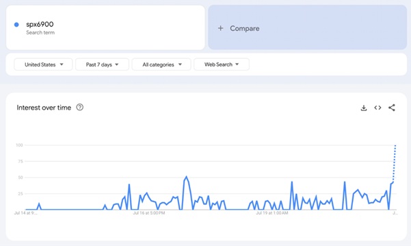 深入來看 SPX,過去七天內“spx6900”關鍵字的搜索量正在飆升,並預計將進入拋物線式爆發階段——這也意味著市場對 T6900 的FOMO買盤很快就會跟上!