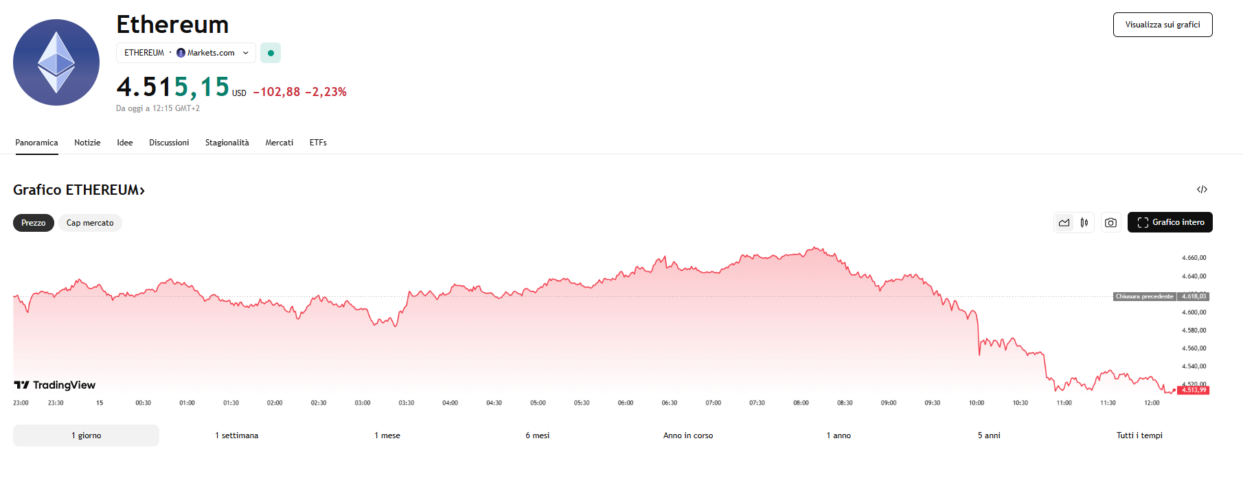 En el momento de escribir este artículo, Ethereum se cotiza a 4.527 dólares**, ligeramente a la baja en las últimas 24 horas. Sin embargo, Ethereum muestra ganancias significativas en horizontes temporales más amplios, con aumentos del 5% semanalmente y del 1,79% mensualmente**.