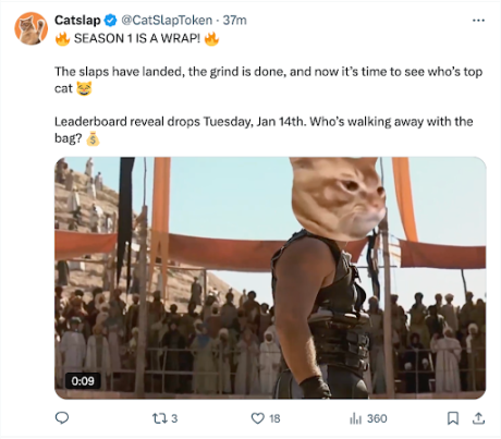 ¡Buenas noticias para los participantes en el Slap-to-Earn de Catslap: el ranking de los ganadores que se llevarán el premio acumulado de 100.000 dólares se publicará el martes, 14 de enero. Es sólo cuestión de tiempo que conozcamos a los grandes vencedores.