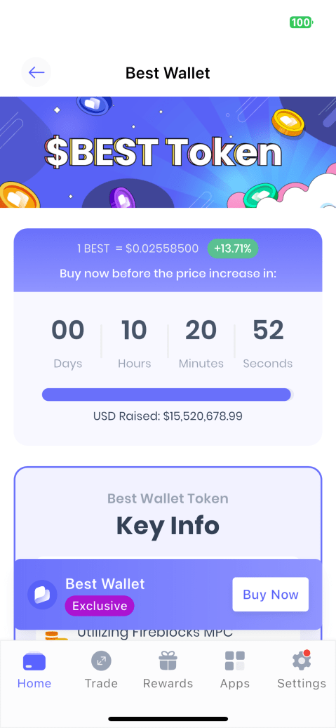 現在只要下載Best Wallet應用程式即可獲得獨家購買 Best Wallet 代幣的資格。此後該代幣將對其他錢包用戶開放。目前,Best Wallet 用戶可在最低價格時享有購買機會。