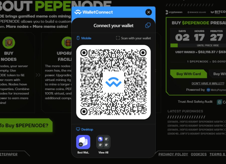 Pepenode 預售金額已突破94萬美元,正快速朝100萬里程碑邁進,資金動能顯示出市場對其Mine-to-Earn機制的持續認可。