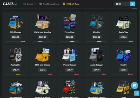Cases.gg is our second loot box choice for being in the running to win a MacBook. This site is also notable for being able to build your own boxes and earn a percentage every time someone ‘unboxes’ it.
