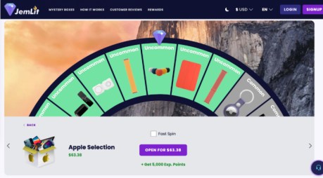 The best loot box site of all is JemLit, and if you spin the wheel and it’s not what you want, you can get the cashback equivalent to spin again. Still not what you want? Take the cashback value and spin again. However, the next item could be worth less.