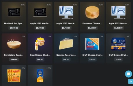 One of the boxes is called MAC and Cheese, where you could either win a MacBook or – macaroni and cheese. You have a 75% chance of getting the macaroni.