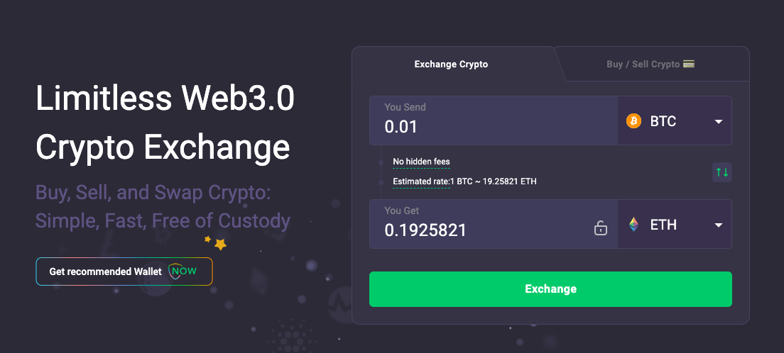 A ChangeNOW gyors és egyszerű kriptovaluta váltást kínál, ráadásul elérhető számítógépen és mobiltelefonon egyaránt. Ezenkívül lehetőséget nyújt digitális eszközeid stakelésére is, így passzív jövedelemhez juthatsz. Emellett dAppokat is felfedezhetsz a WalletConnect technológiát támogató NOW Wallet használatával. A platform saját tokenje, a NOW, különböző tranzakciókhoz, airdropokhoz, stakinghez és kedvezményekhez használható. A token piaci kapitalizációja jelenleg 10 millió dollár. Az érmékből negyedévente elégetnek egy adott mennyiséget annak érdekében, hogy növeljék a token értékét. Ebből is látszik, hogy a legjobb KYC nélküli tőzsdék a felhasználóik anyagi jólétét szeretnék.