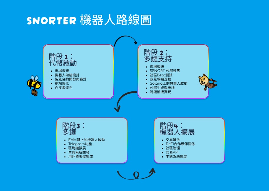 到了 第四階段Snorter 計畫引入 AI 驅動的交易演算法,與 DeFi 協定展開合作,並通過 SNORT 代幣實現社群治理(DAO),讓持幣者擁有關鍵開發決策的投票權。