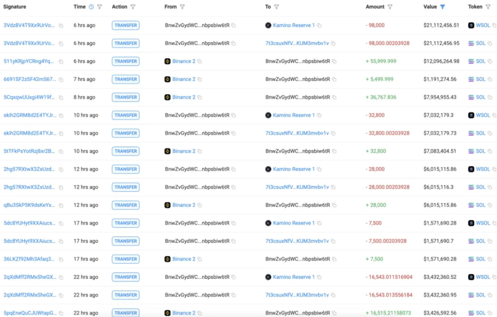 Lookonchain riporta che nelle ultime 24 ore due wallet di whale hanno prelevato un totale di 376.076 SOL (per un valore di circa 80,7 milioni di dollari) da Binance trasferendo i token su Kamino. Questa operazione non solo evidenzia la fiducia delle whale nel potenziale a lungo termine di Solana, ma segnala anche un trend più ampio nel mercato: gli investitori stanno ruotando capitale verso altcoin a grande capitalizzazione in vista di un rally.