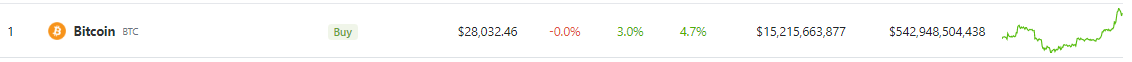 In sync with the surge in active addresses, Bitcoin’s price on CoinGecko has climbed $28,032, giving it a 3.0% increase within the last 24 hours. This surge in price also translated to an increase of 4.7% over the course of seven days.