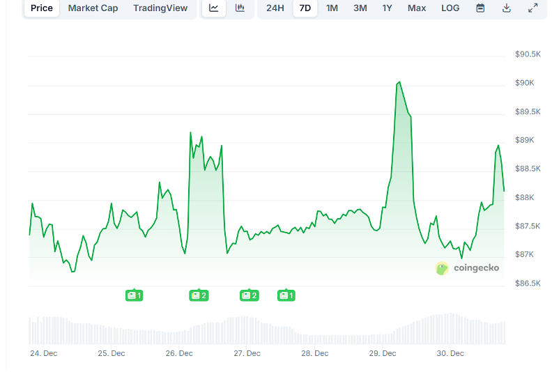 比特幣近期交易價格接近 90,000 美元關口,重新引發了關於年底強勢表現及 2026 年初市場佈局的討論 。