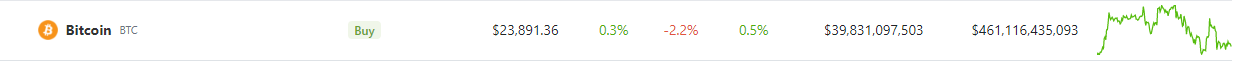 At the time of writing, Bitcoin has risen 0.5% in value over the past week, and is currently trading at $23,891, data from Coingecko shows. The most popular coin dropped 2% in the past day.