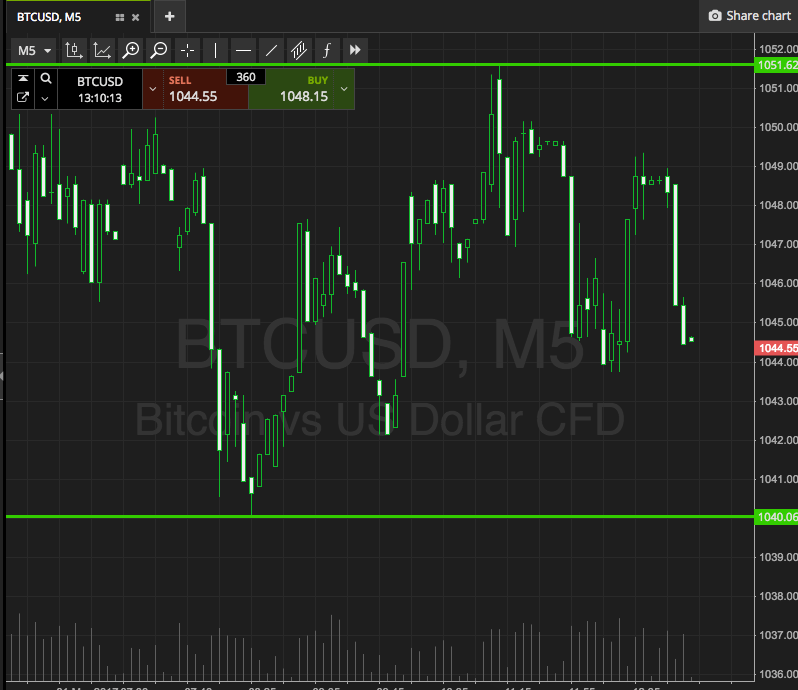 If price breaks through resistance, we’ll get in long towards a target of 1062. A close below support will put us in short towards 1030.