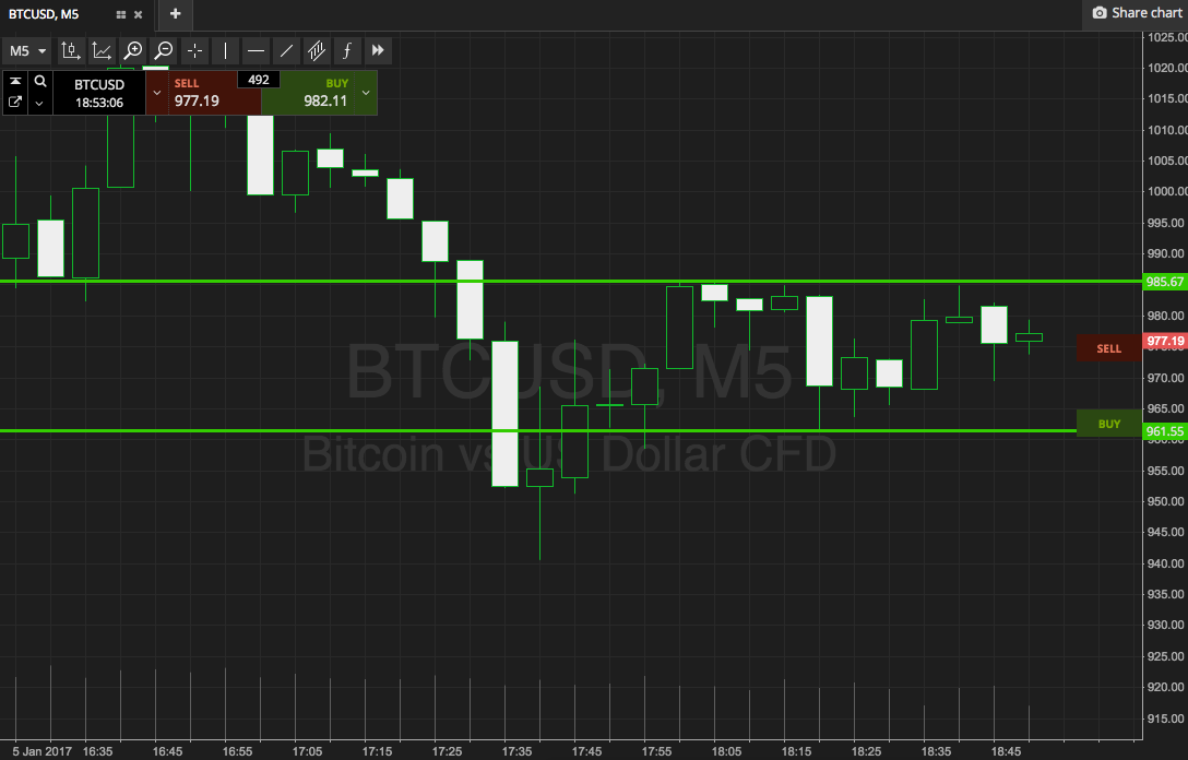 I’m tempted to stop writing these bitcoin analyses. Everything was running smoothly until I warned of a correction yesterday, and since then, things have just gone south. Well, we got a slight correction last night, some consolidation this morning, and then when we published an analysis early morning out of Europe, suggesting we may see a further decline towards the 1000 level, things started to fall again. As the chart below will show, the bitcoin price did fall towards this level, and has in fact broken it. At time of writing, we’re currently trading somewhere in the region of 980. It’s a bit disappointing from a long term holding perspective, but from an intraday perspective, ‘t’s been pretty good.