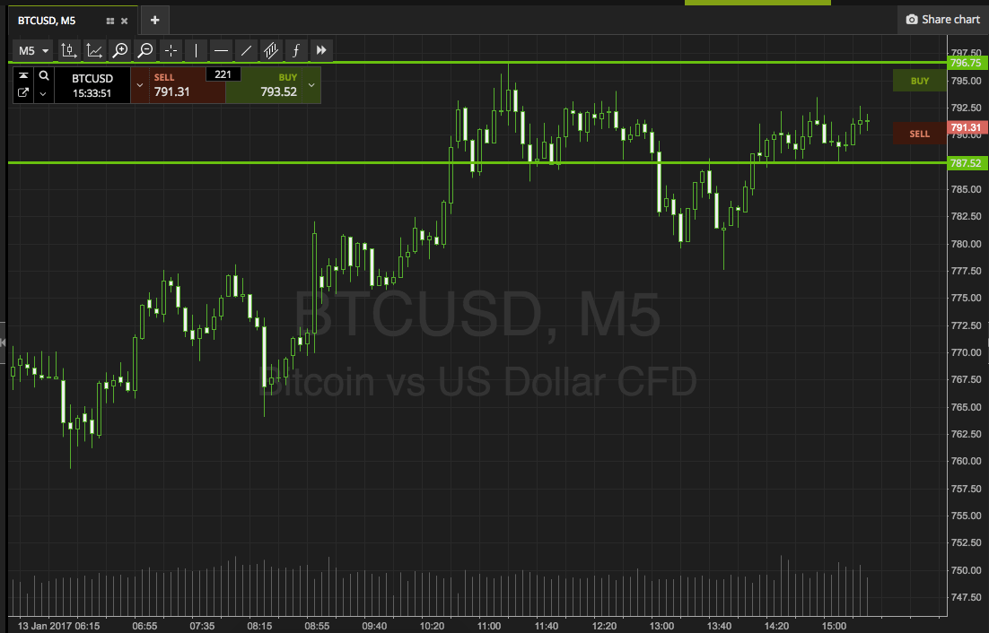 As the chart shows, the range we are targeting this evening is defined by support to the downside at 787, and resistance to the upside at 796. Breakout only once again. If we see price break above resistance, we’re going to look to get in long towards an immediate upside target of 807. A stop loss on the trade at 793 defines risk. Conversely, a close below support will signal short towards 780. Again we need a stop loss, and somewhere in the region of 790 looks good.