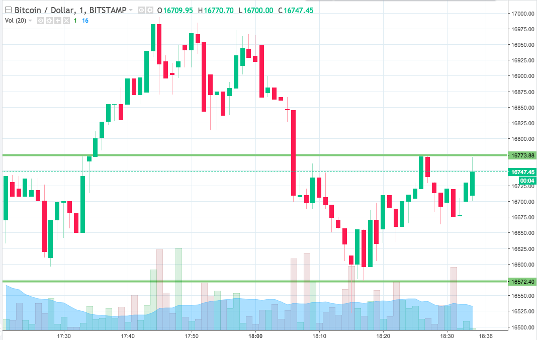 As the chart shows, the range we are looking at for the session this evening comes in as defined by support to the downside at 16572 and resistance to the upside at 16773. If we see price close above resistance, we’ll try and get in long towards an immediate upside target of 16850. Looking the other way, if we get a close below support, we’ll get into a short trade towards a downside target of 16500.