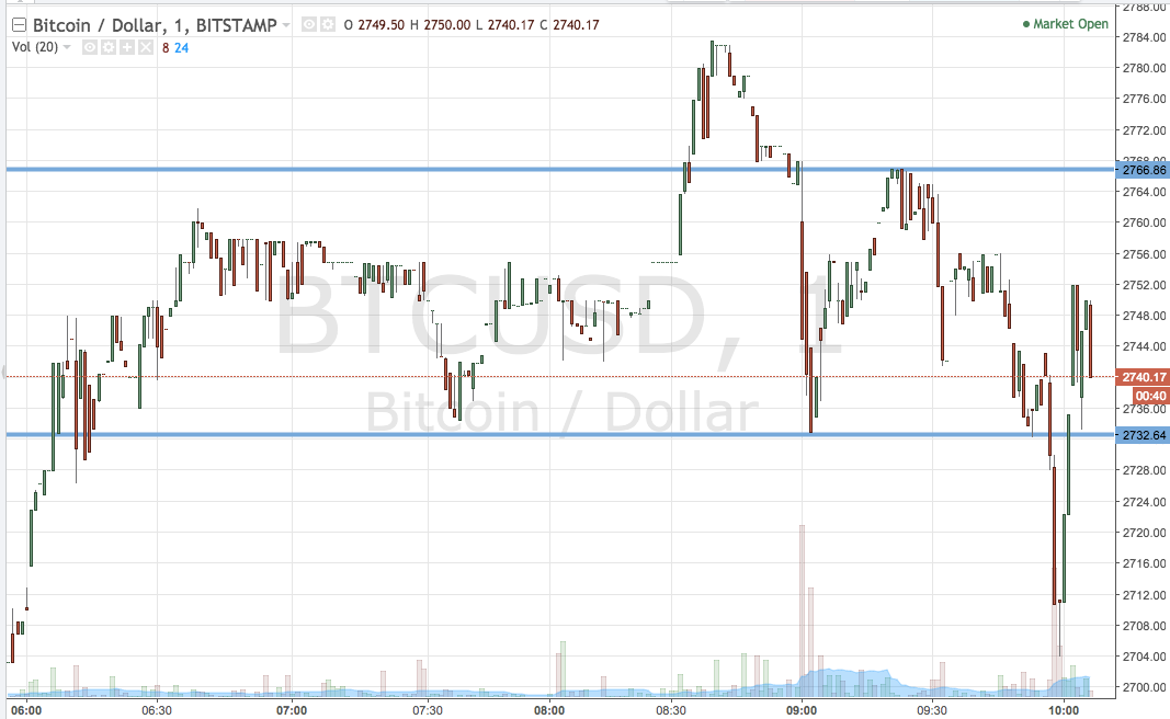 As the chart shows, then, the range we’re going for today is defined by support to the downside at 2732 and resistance to the upside at 2766. There’s probably just enough room to go at price with an intrarange strategy on this range but, primarily because of the volatility we’ve seen overnight, we’re going to stick with our breakout approach. Specifically, if we see price break through resistance, we’ll be in long towards an upside target of 2790. A stop at 2755 looks good from a risk management perspective.
