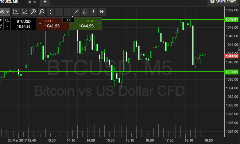 So that’s another day done in the bitcoin price, and it is time to take stock of what we’ve seen during the late European session and early US session, in an attempt to put together a strategy for use this evening. As we noted this morning, things haven’t quite turned out as we expected over the weekend. Price broke through the level we had slated as long-term support, and this had the affect of altering our risk strategy. We set up against action with a circa $10 range this morning, and highlighted both the potential for our intrarange strategy and our breakout strategy coming into play. As it turned out, we managed to pick up a quick profit on the breakout side of the equation, and we’re going to go forward with a very similar approach this evening.