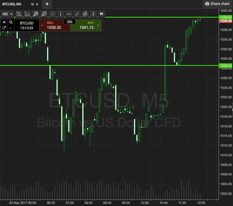 Ok so things were a little more volatile over the weekend than we initially expected them to be. When we closed out the session last Friday, Price was hovering in and around the 1130 mark, and we expected 1100 to hold over the weekend as longer-term support. This, unfortunately, did not happen. The bitcoin price currently trades in and around the mid-1130s, and we have had to adjust our long-term support expectations based on this action. It doesn’t really change anything from a strategy perspective – we’re still going to look to get in both long and short as and when price dictates – but it does open up the potential for a little bit more aggression to the downside than we were willing to take on previously.