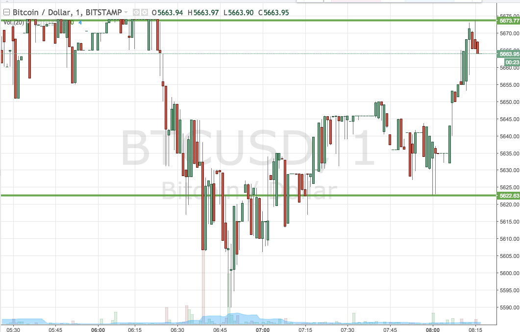 As the chart shows, then, the range we are going to use for the session today comes in as defined by support to the downside at 5622 and resistance to the upside at 5677. We’re going to stick with our breakout strategy for the time being, purely because price is moving pretty fast and intrarange doesn’t leave us enough room for our risk management parameters under these conditions.