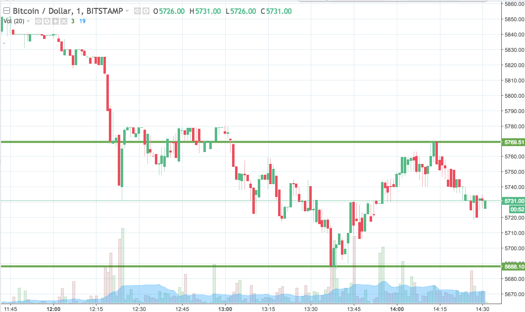 As the chart shows, we are working with a range defined by support to the downside at 5688 and resistance to the upside at 5769.
