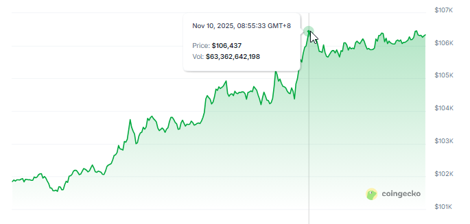 According to Bloomberg Intelligence’s Mike McGlone, Bitcoin has entered a “do-or-die” phase as traders watch a narrow price band for signs of direction. From an Oct. 6 level of $123,500, the coin tumbled almost 20% to a low of $99,900 on Nov. 4 before recovering to about $106,350. Reports show the move left Bitcoin roughly 14% below its earlier October peak.