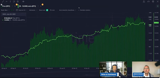 According to Maksim, who joined Santiment analyst Brian on the podcast, whenever these wallets do decrease their holdings, it can lead to “postponed price suppression weeks thereafter.” Therefore, Santiment advised market participants to monitor the holdings of large Bitcoin wallets. A lack of selling from whales could indicate underlying strength, while a significant drop can be a warning of future price weakness.