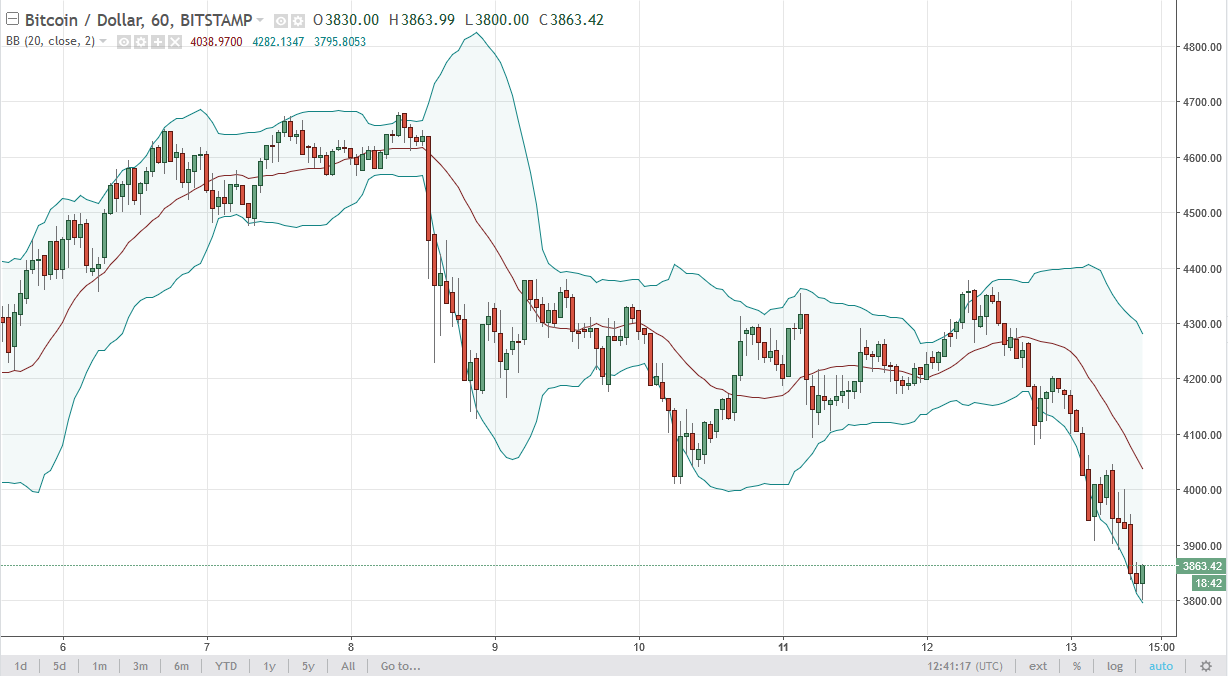 Bitcoin fell against the US dollar as we are now below the $4000 level. With the Chinese cracking down on crypto currencies, it seems as if there is a bit of fear entering the marketplace. Because of this, the printing trader will probably step to the sidelines and wait for at least some stability, if not bullish pressure to the upside. The $3800 level is acting as support currently, but we could go lower.