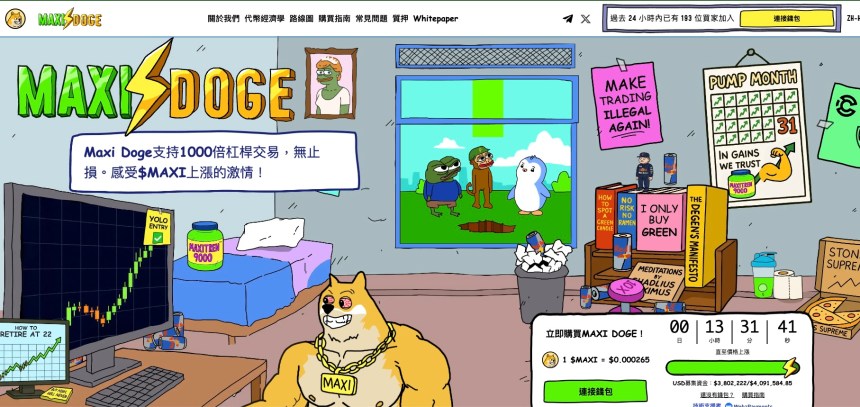 Maxi Doge則以其極端的“1000倍杠桿交易者世界觀”成為新世代迷因幣中的黑馬。於2025年展開預售並迅速籌集超過419萬美元,並確認超過95億枚代幣被質押。其提供高達76%至81%的年化獎勵,使其流通量自然下降與稀缺性提升。