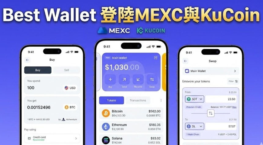 Best Wallet為多鏈非託管Web3錢包,支援超過60條鏈,整合存儲、兌換、質押、即將推出代幣入口與跨鏈DEX,並採用Fireblocks MPC-CMP機構級安全技術,同時支援生物識別登入。官方計畫於2026年底前取得40%市場份額。