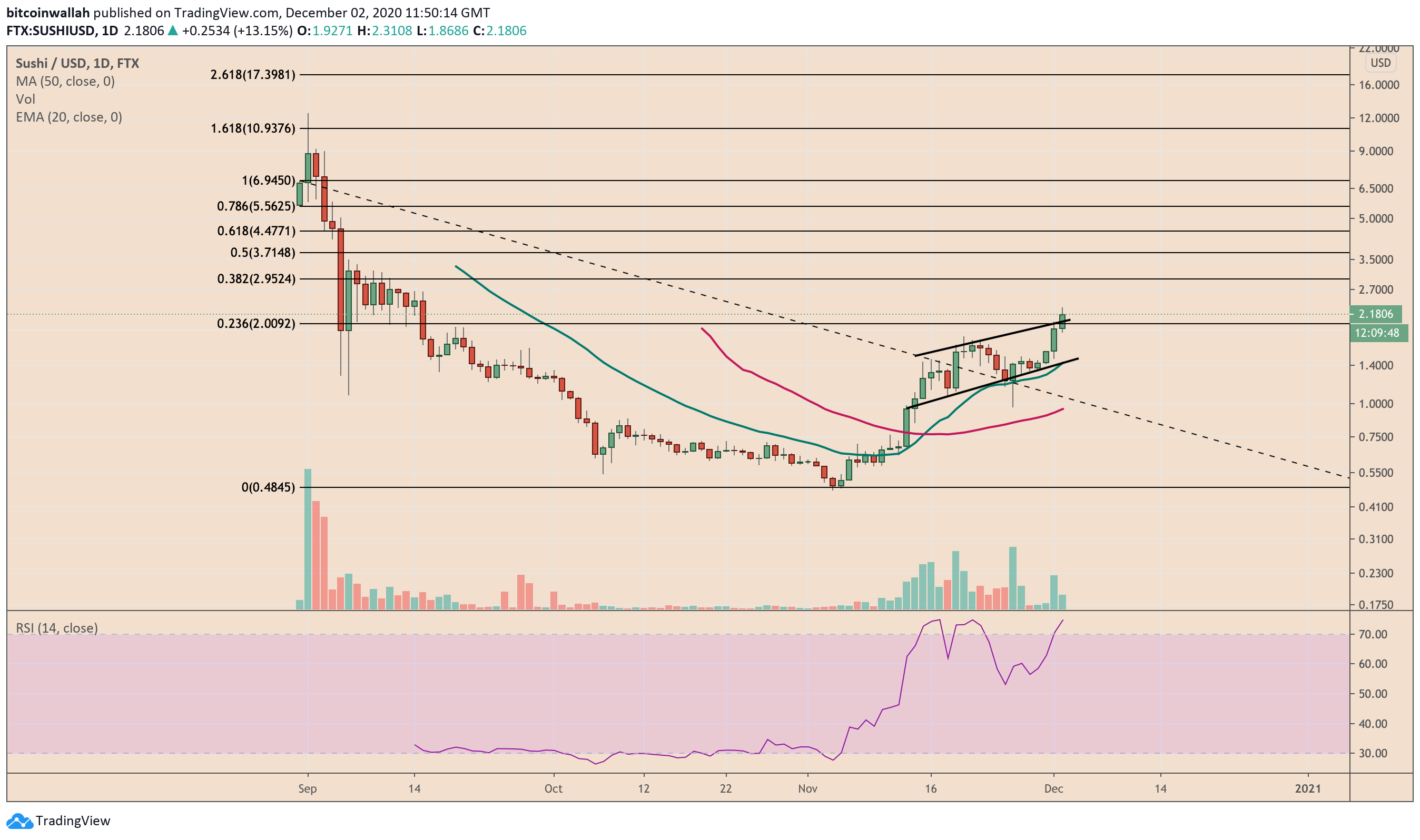 SushiSwap’s governance token SUSHI continued its rally upward on Wednesday as its price per unit breached the $2-resistance level.
