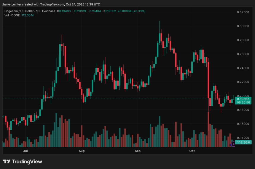 Dogecoin’s price tumbled from around $0.3066 to approximately $0.198, marking a dramatic 30 % decline that has shaken short-term holders. On the technical front, DOGE broke below a consolidating upward wedge, and a “death cross” is looming as the 50-day EMA approaches a crossover beneath the 200-day.