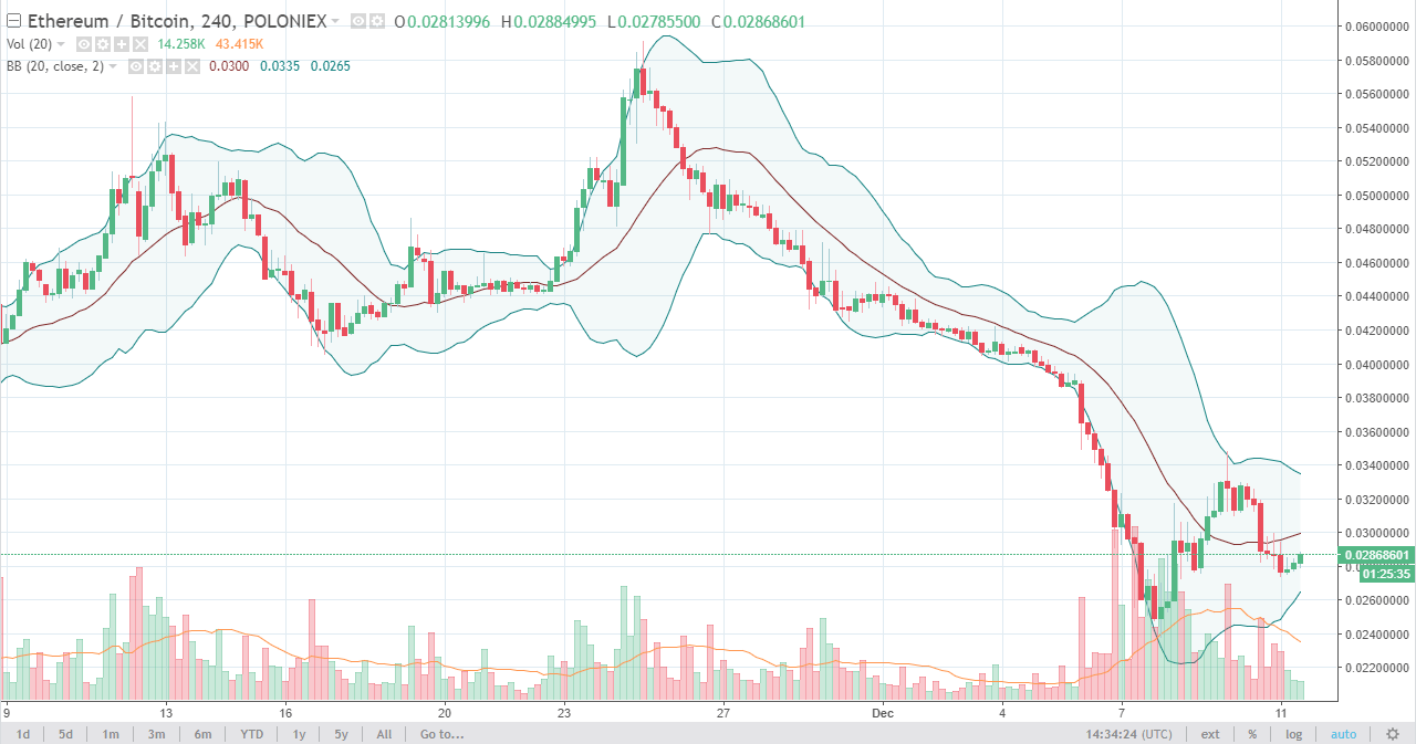 Ethereum was noisy over the weekend against Bitcoin as well, but seems to be trying to turn to the upside as I record. However, I look at the 0.035 level as significant resistance, and therefore I’m looking for signs of exhaustion to start selling again, as Bitcoin has certainly captured the imagination of the general public. I am not interest in buying this market yet, I would need to see a significant base built.