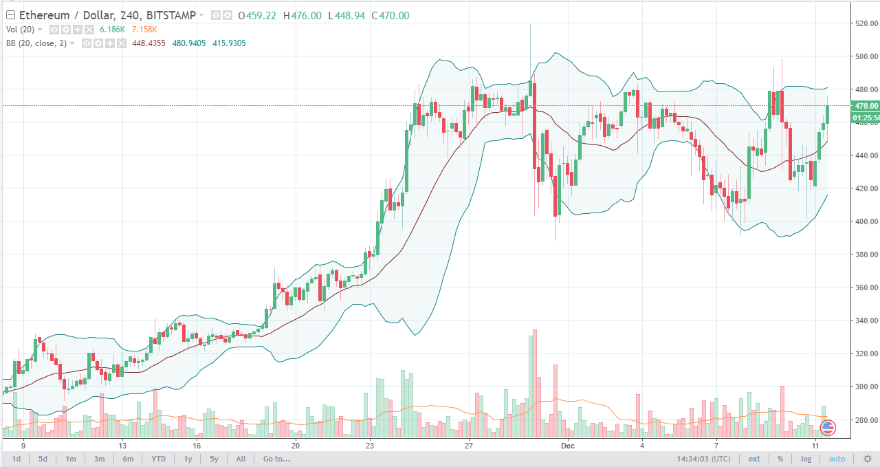 Ethereum has been choppy over the last several days, as the weekend was noisy. Most of the interest around the world seems to be focused on Bitcoin and the reaction of the Chicago’s future markets, so Ethereum has creeped to the back burner. However, it looks as if we are making a serious run towards the $500 level, so on a break above there I believe that the market has much higher to go, probably targeting $580.