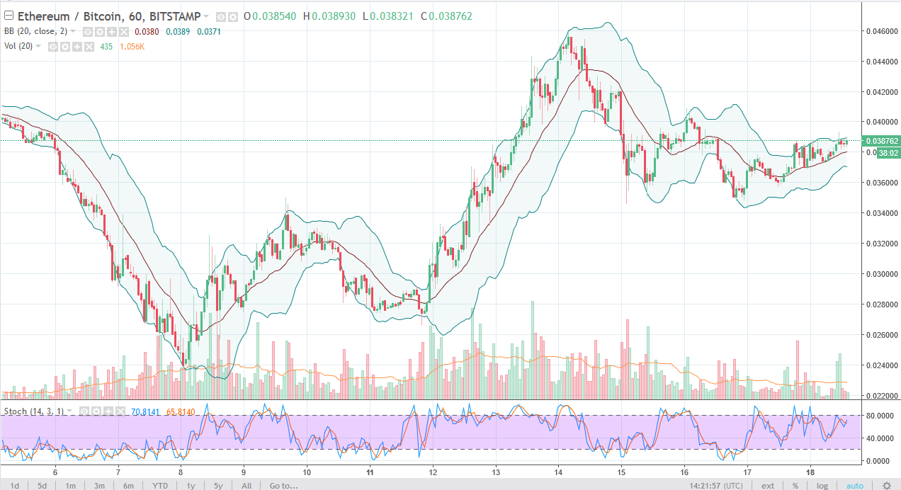 Ethereum has been holding relatively strong against Bitcoin, trading in a range. I still believe that there is longer-term downward pressure, but it appears that in the short term we may go looking towards the 0.04 level, followed by the 0.045 handle. Because of this, short-term buyers might be attracted but I believe it will only set up a shorting opportunity.