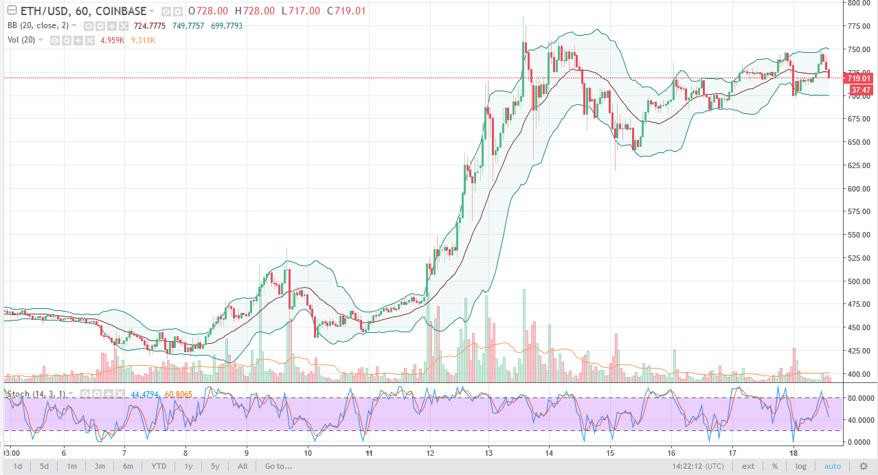Ethereum continues to go sideways during the trading session on Monday, but has a slight upward tilt. Because of this, I believe that the market is going to continue to find buyers underneath, perhaps sending this market to the upside. I think that given enough time, the market should then go towards the $800 level, the next psychologically important level. It appears currently that there is a massive amount of support near the $650 handle.