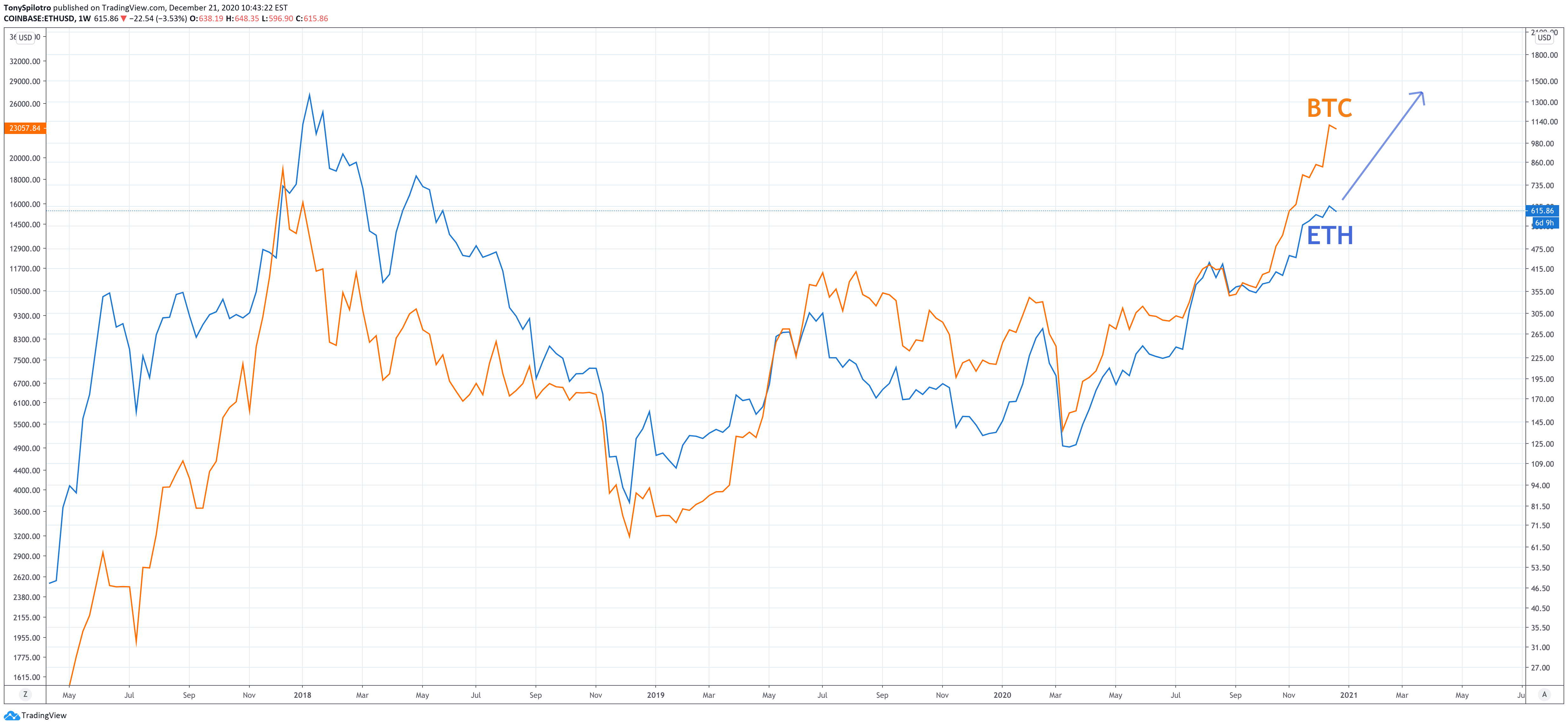 Could this uptick in activity cause Ethereum to catch up to Bitcoin finally? | Source: ETHUSD on TradingView.com