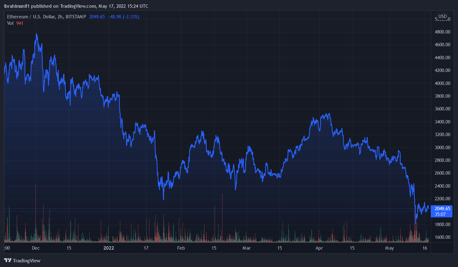 According to a recent Bloomberg article, John Roque of 22V research believes that Ethereum might fall to $420, a loss of 80% from its present price, and here’s why.