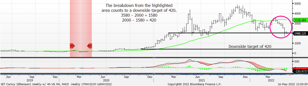 With Ether falling below $2,000, it is no longer within the previously specified range and will begin to fall to the next significant chart support at around $420.