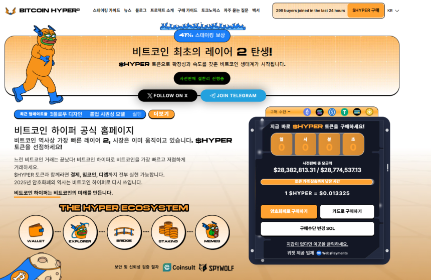이런 흐름은 강한 테마성을 갖춘 신규 프로젝트로 눈길을 돌리는 투자자층을 더 빠르게 확대시키는 결과를 낳고 있다. ETF 중심 시장이 흔들릴 때 상대적으로 성장 서사가 명확한 초기 단계 프로젝트들이 더 돋보이고 있기 때문이다. 특히 비트코인 생태계 확장성과 보상 구조를 전면에 내세운 비트코인 하이퍼(HYPER)는 불확실성 국면에서 눈에 띄는 대안으로 자리 잡고 있다. 이미 2,838만 달러를 모집한 대규모 프리세일 실적은 시장 내 수요를 간접적으로 보여주며, 흔들리는 ETF 흐름 속에서 새로운 자본이 어디로 향하고 있는지를 설명해준다. 이러한 배경은 비트코인 하이퍼가 가진 구조적 장점을 더욱 뚜렷하게 만든다.