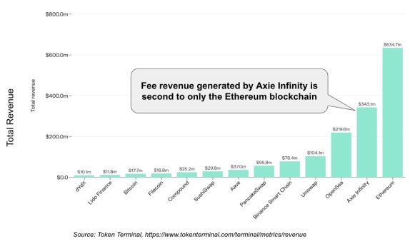 Axie Infinity has surpassed 1M daily active users, and is generating more revenue than any protocol or platform with the lone exception of Ethereum. Yes, Axie Infinity is yielding more fee revenue than major platforms such as OpenSea, Uniswap, Bitcoin, or the Binance Smart Chain.